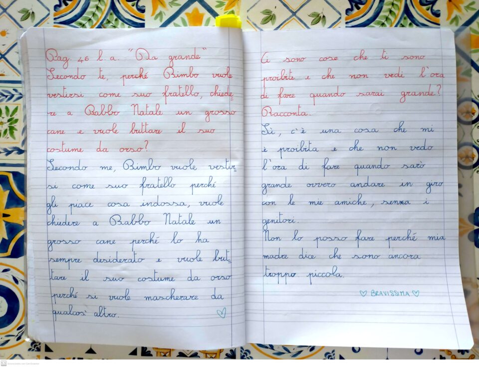In questo quaderno troverete principalmente le attività di grammatica (ortografia e morfologia) svolte durante l’anno scolastico. Talvolta sono presenti alcune attività sui testi e i compiti svolti dai bambini legati al loro libro di lettura (“Tre amici”, Pearson).